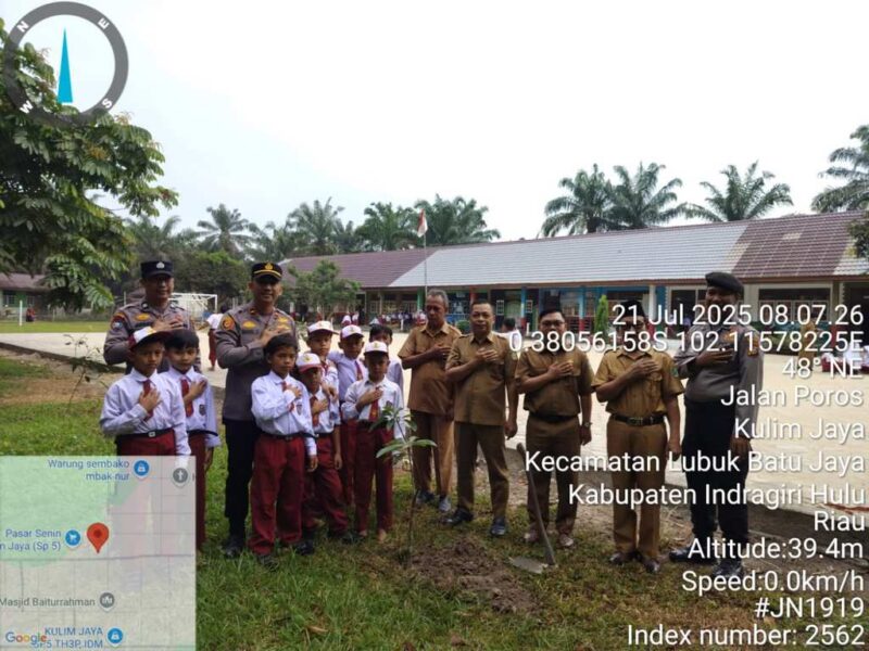 Pekanbaru — Dalam rangka mendekatkan institusi Kepolisian kepada generasi muda sekaligus menanamkan nilai-nilai kepedulian terhadap lingkungan, Kapolsek Lubuk Batu Jaya (LBJ) Ipda Daniel Okto S., S.E., M.H., memimpin upacara bendera sebagai inspektur upacara (irup) di SDN 009 Desa Kulim Jaya, Kecamatan LBJ, Kabupaten Indragiri Hulu, Senin (21/7/2025) pagi.