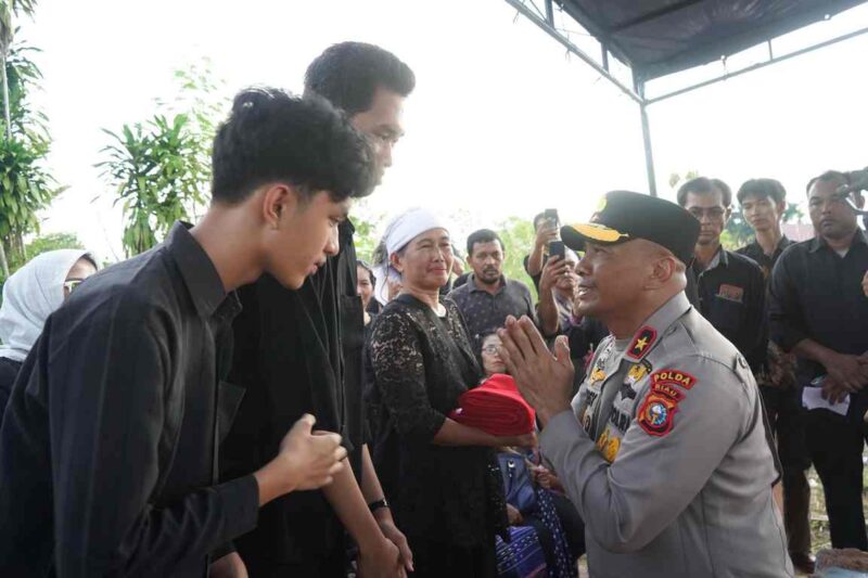 PEKANBARU | Suasana haru menyelimuti pemakaman Iptu (Anumerta) Donald Junus Halomoan, anggota Brimob Polda Riau yang gugur saat menjalankan tugas memadamkan kebakaran hutan dan lahan (karhutla) di wilayah Rokan Hilir, Provinsi Riau. Ia dimakamkan pada Kamis sore, 7 Agustus 2025, di Tempat Pemakaman Umum Umban Sari, Rumbai, Kota Pekanbaru. Prosesi pemakaman dilangsungkan secara kedinasan, sebagai bentuk penghormatan terakhir negara atas pengabdian Donald sebagai Bhayangkara sejati yang wafat dalam tugas.