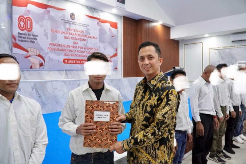 Medan – 17 Agustus 2025, usai melaksanakan Upacara HUT RI Ke-80 Kemerdekaan Republik Indonesia, Rutan Kelas I Medan melaksanakan penyerahan Remisi Umum dan Remisi Dasawarsa Tahun 2025 kepada Warga Binaan. Acara penyerahan dipimpin langsung oleh Kepala Rutan Kelas I Medan, Andi Surya didampingi Kepala Seksi Pelayanan Tahanan, Ronny Steven, Kasubsi Administrasi & Perawatan, Wisnu Jatmiko, beserta Staff.