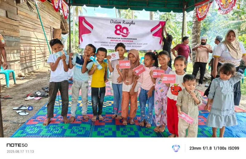 ACEH JAYA | Tokoh Exs Kombatan GAM Kabupaten Aceh Jaya Wan Khairunas alias Wan Jambang bersama dengan masyarakat Kecamatan Teunom dan Pasir Raya menggelar acara syukuran di Hari ulang Tahun Kemerdekan Republik Indonesia yang ke 80 bertempat Digampong Alue Krueng, Kecamatan Pasir Raya, Kabupaten Aceh Jaya, minggu (17/8/2025).