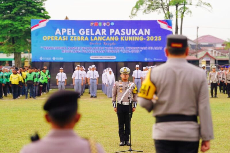 Pekanbaru |  Kepolisian Daerah (Polda) Riau mengerahkan 976 personel dalam Operasi Zebra Lancang Kuning 2025. Uniknya, dalam apel ini, Polda Riau mengikutsertakan sejumlah pelajar Sekolah Menengah Atas (SMA) dan driver ojek online (ojol) dalam apel pasukan sebagai bagian dari edukasi tertib berlalu lintas. Senin (17/11/2025).