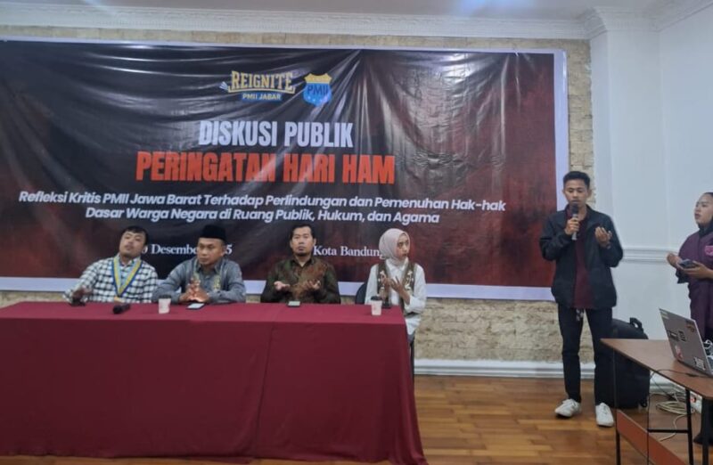 Bandung, – Pengurus Koordinator Cabang Pergerakan Mahasiswa Islam Indonesia (PKC PMII) Jawa Barat hari ini menggelar acara diskusi publik dan Deklarasi Pernyataan Sikap PMII Jawa Barat dalam rangka memperingati Hari Hak Asasi Manusia (HAM) Sedunia, 10 Desember 2025.